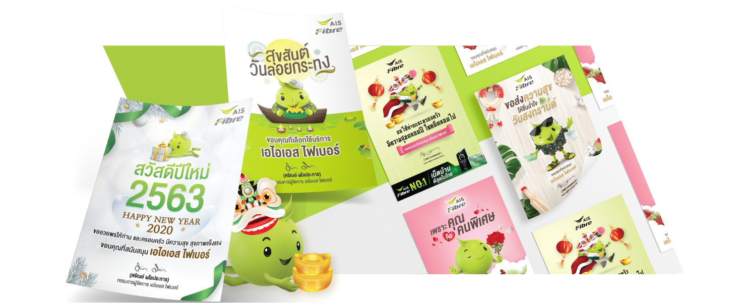 , VDO presentation , ออกแบบงาน Event และงานออกแบบอื่น ๆ ทั้ง Online & Offline ตาม Concept & Campaign ที่ได้รับโจทย์จากทีมงานของ AIS โดยตรง